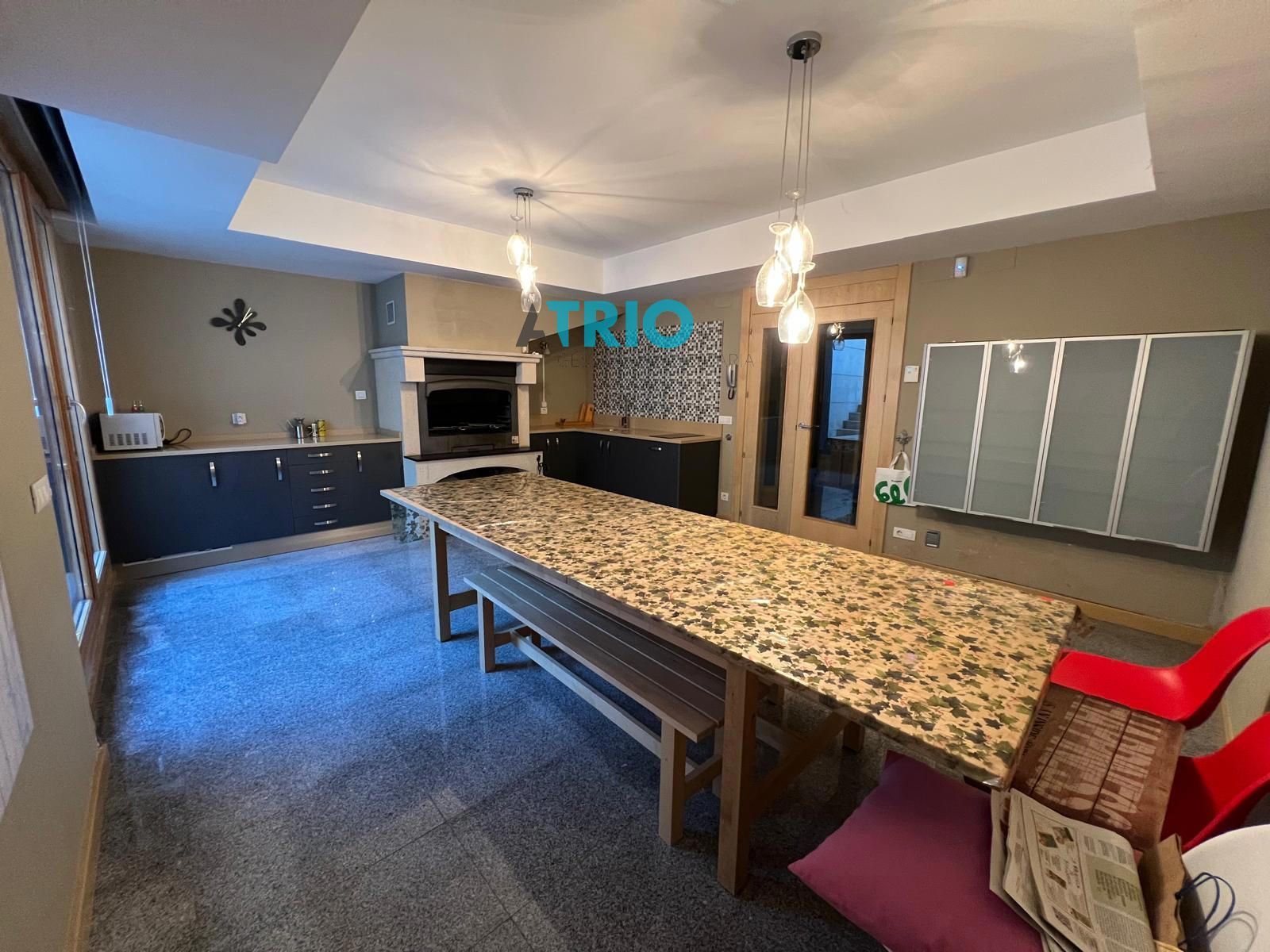 un merendero equipado muy grande con acceso desde el jardín delantero, también tiene un aseo un trastero y acceso al garaje bastante grande para dos coches e incluso una moto.La segunda planta tiene 3 habitaciones la principal con su bano en suite y