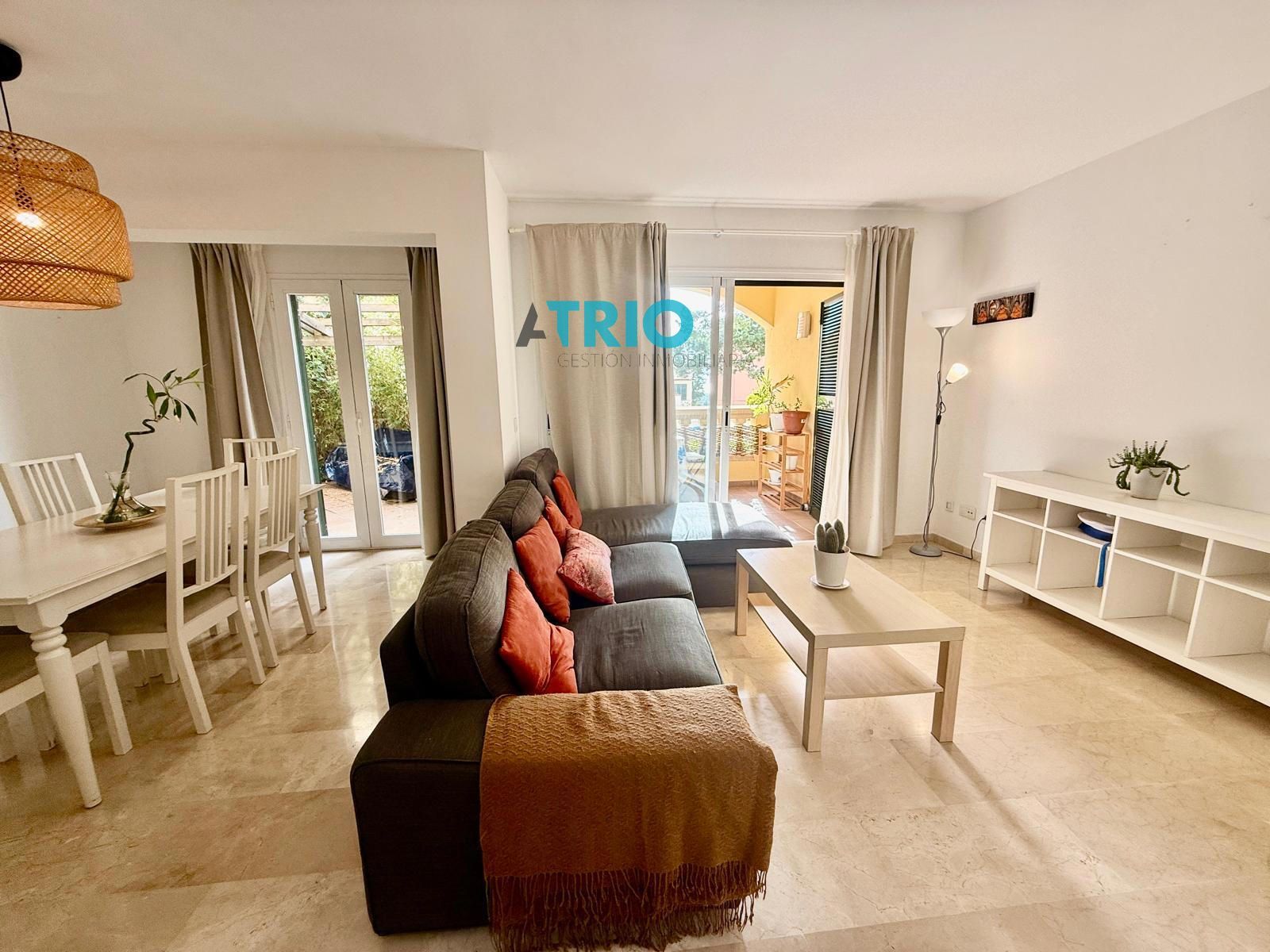 En una de las zonas residenciales más demandadas y tranquilas de Palma se encuentra esta acogedora y espaciosa planta baja, una propiedad que destaca por su comodidad, amplitud exterior y excelente ubicación en La Bonanova, a pocos minutos a pie del Centro Comercial Porto Pi y muy cerca del Paseo Marítimo.La vivienda ofrece un equilibrio perfecto entre vida interior y exterior gracias a su gran terraza privada que rodea toda la propiedad, un verdadero privilegio que permite disfrutar del clima mediterráneo durante todo el año. Desde la terraza principal se aprecian agradables vistas a la piscina comunitaria, creando un entorno relajado y muy agradable, ideal tanto para el día a día como para momentos de descanso y ocio.En su interior, la propiedad cuenta con dos amplios dormitorios dobles, ambos con armarios empotrados y buena entrada de luz natural. El dormitorio principal dispone de baño en suite, ofreciendo mayor privacidad y confort, mientras que el segundo baño completo da servicio al resto de la vivienda y a las visitas. Ambos baños se encuentran en buen estado, con acabados funcionales y actuales.La cocina es independiente y está totalmente equipada, pensada para quienes valoran un espacio práctico y bien distribuido, con capacidad de almacenaje y zona de trabajo cómoda. El salón-comedor es amplio y luminoso, con acceso directo a la terraza, lo que aporta una agradable sensación de amplitud y continuidad entre el interior y el exterior. Este espacio es perfecto para disfrutar de reuniones familiares, cenas con amigos o simplemente relajarse con vistas a la zona comunitaria.Entre sus características destacan el aire acondicionado frío/calor, ventanas de PVC con doble acristalamiento, persianas, suelos de cerámica de fácil mantenimiento y un diseño funcional que aprovecha al máximo cada metro cuadrado. Además, la vivienda cuenta con un cuarto trastero situado en la terraza trasera, así como una zona ajardinada privada, ideal para crear un rincón verde, una zona de lectura o incluso un pequeño huerto urbano.El edificio está muy bien cuidado y conservado, dispone de ascensor y ofrece un entorno tranquilo y familiar, con una agradable piscina comunitaria que añade un valor extra a la propiedad, especialmente durante los meses de verano.La ubicación es otro de sus grandes atractivos. La Bonanova es un barrio residencial consolidado, conocido por su tranquilidad, sus vistas a la bahía de Palma y su cercanía al centro de la ciudad. Desde el mirador de La Bonanova se disfrutan de panorámicas espectaculares, y la zona cuenta con todos los servicios necesarios: comercios, colegios, transporte público y restaurantes. El Paseo Marítimo se encuentra a pocos minutos en coche, el aeropuerto a tan solo 15 minutos, y el Centro Comercial Porto Pi a corta distancia a pie.Una propiedad ideal tanto como residencia habitual como para inversión, que combina ubicación, calidad de vida y un excelente espacio exterior en una de las mejores zonas de Palma.